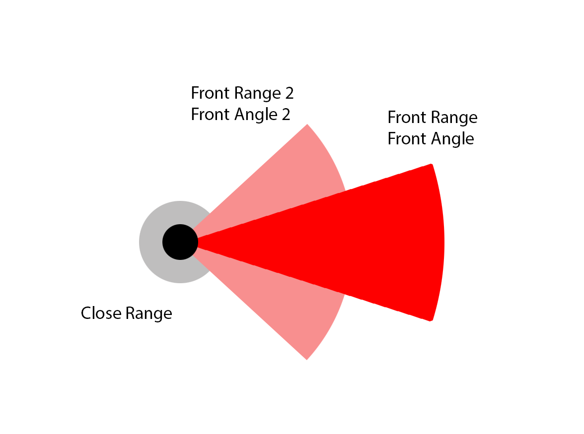 The guards needs to be able to observe their surroundings so we need a perception system. I want to make agent not to see its back, but sensing if someone is really close and have some peripheral vision with limited range (cf figure below). Also, guard should not be able to see through obstacles.